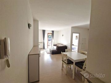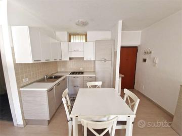 Gli spazi interni sono studiati con grande intelligenza: un accogliente soggiorno in open space con cucina su misura completa di lavastoviglie, una luminosa camera matrimoniale e un bagno finestrato con doccia.