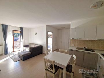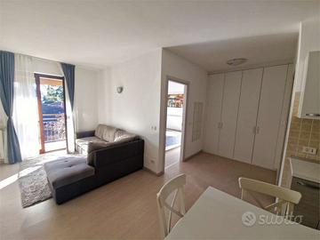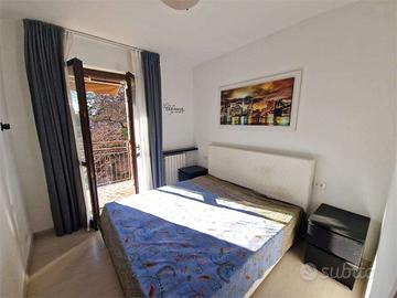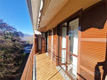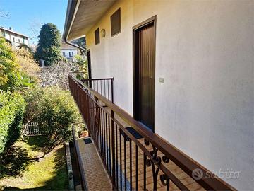 Sia il soggiorno che la camera da letto affacciano su un balcone privato dal quale si gode una piacevole vista parziale sul lago, uno spazio esterno prezioso che include anche un comodo ripostiglio con caldaia e angolo lavatrice.
