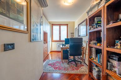 La cucina abitabile, caratterizzata dal pavimento in cotto, è collegata a un pratico bagno di servizio con zona lavanderia e affaccia su una veranda tecnica dove sono collocati gli impianti.
