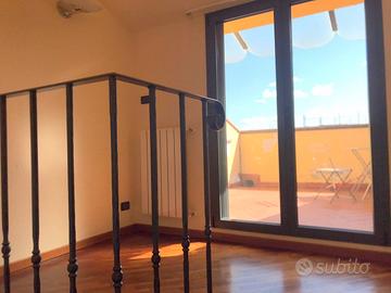 Prato semicento in elegante e riservato contesto bellissimo appartamento su due livelli posto al primo piano: al piano soggiorno ,ampio cucinotto camera matrimoniale con bagno salendo al piano superiiore altra camera matrimoniale terrazzo abitabile e ulteriore bagno ARREDATO SOLO di cucina e amani a muro in una camera - libero dal 1 gennaio ma visitabile da prossima settiman aprevio appuntamento
