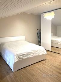 L'appartamento, completamente arredato con mobili di design, è composto da una spaziosa camera matrimoniale, una camera singola, un bagno finestrato in marmo e una luminosa zona giorno con angolo cottura, attrezzato con elettrodomestici di gamma. La vista sui tetti di Udine aggiunge un tocco di esclusività alla proposta.