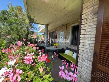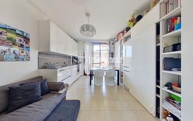 L'ingresso conduce direttamente nella luminosa zona giorno, dove si trova un ampio soggiorno con cucina a vista, ambiente aperto e ben organizzato che permette di ospitare comodamente una zona pranzo e una zona living. L'affaccio sul terrazzo di circa 30 mq è uno dei veri punti di forza dell'appartamento: uno spazio esterno ampio e riservato, perfetto per pranzi e cene all'aperto, momenti di relax, o semplicemente per godere di uno sfogo privato all'aria aperta.
