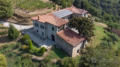 Una vista panoramica... meravigliosa, fa da cornice naturale a questo bellissimo casale con inserti in pietra; la Residenza si raggiunge facilmente tramite una incantevole e comoda strada privata di campagna a fondo chiuso, immersa tra le vigne, gli uliveti e alberi ombreggianti e rigogliosi.