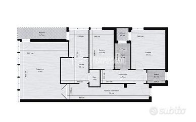 L'immobile, attualmente configurato come trilocale, offre grande flessibilità; infatti la metratura generosa e la distribuzione degli ambienti consentono di ricavare una terza camera.