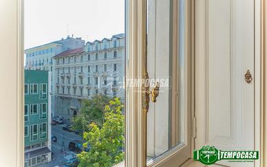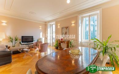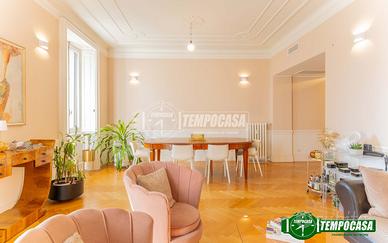 In un prestigioso palazzo d'epoca del 1905, con affreschi e stucchi originali, proponiamo in vendita un raffinato quadrilocale di 151 mq situato al terzo piano, servito da ascensore e portineria mezza giornata.