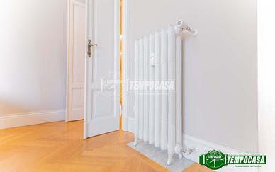 L'appartamento, molto luminoso grazie alla doppia esposizione, si distingue per i soffitti decorati, parquet in rovere a lisca di pesce e termosifoni originali con termovalvole digitali programmabili Caleffi. La porta d'ingresso è blindata, a garanzia di sicurezza e privacy.