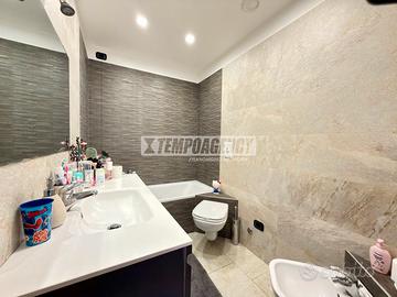 La zona notte, ben distribuita, è composta da tre camere da letto di generose dimensioni e doppi servizi. Uno dei bagni è padronale, direttamente collegato alla camera matrimoniale e dotato di vasca, garantendo comfort e privacy, mentre il secondo bagno serve comodamente il resto dell'abitazione.