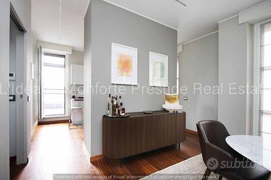 Rif:V2285 (127407909) - Nel cuore di una delle vie più centrali e prestigiose di Milano, tra Porta Venezia, Repubblica e la Stazione Centrale, proponiamo una raffinata residenza di circa 150 mq, situata al quinto piano di uno stabile signorile con portineria full time e doppio ascensore. L'appartamento è stato oggetto di una recente ristrutturazione integrale, realizzata con materiali di pregio e un attento studio degli spazi e della luce, che conferiscono all'abitazione un carattere elegante e contemporaneo. L'ingresso introduce a una ampia zona living di rappresentanza, dove soggiorno e sala da pranzo dialogano armoniosamente in un ambiente luminoso e accogliente. Il parquet in noce a plancia larga, l'illuminazione architettonica integrata e gli elementi di arredo su misura definiscono uno spazio raffinato e perfettamente equilibrato. La zona giorno si apre verso l'esterno con accesso a un balcone e a uno splendido terrazzo verandato, un vero e proprio giardino d'inverno affacciato sui tetti della città, ideale per momenti di relax o convivialità in ogni stagione. La cucina, separata e perfettamente attrezzata, presenta linee contemporanee e superfici funzionali, integrandosi con discrezione nell'armonia complessiva dell'abitazione. La zona notte, riservata e ben organizzata, comprende una camera matrimoniale con ampie armadiature su misura, una seconda stanza utilizzabile come studio o camera ospiti e due bagni di design, realizzati con materiali moderni e finiture di qualità. Un corridoio attrezzato con armadiature a tutta altezza garantisce ulteriore spazio contenitivo mantenendo pulizia formale e continuità estetica. La residenza è dotata di impianto di climatizzazione, ed è pronta per essere abitata senza ulteriori interventi. Una proprietà ideale per chi desidera un'abitazione elegante e contemporanea nel cuore di Milano, capace di coniugare comfo - Classe: E - IPE: 141.00 kWh/mq anno