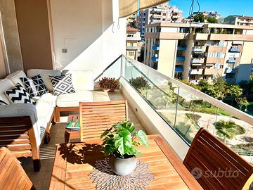 Affittasi elegante suite bivano di oltre 60 mq, al quarto piano di un prestigioso stabile di nuova costruzione, in zona strategica vicino al lungomare, alla Fiera e alla Basilica di Bonaria, con affaccio sul Parco di via Asti.