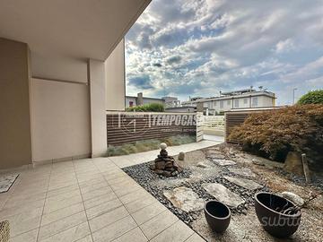 L'appartamento si distingue per il grande giardino privato su due lati, ideale per momenti di relax, cene all'aperto e giochi all'aria aperta.