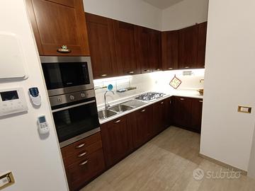 Sambuceto - zona bocciodromo, in zona residenziale di forte sviluppo, si propone in locazione pregiato appartamento trilocale di circa 65,mq sito al piano rialzato di una piccola palazzina di nuova costruzione. L'immobile è così composto: Ingresso - soggiorno con angolo cottura, disimpegno, camera matrimoniale, studio, servizio con doccia. Ampio terrazzo perimetrale, posto auto interno assegnato, garage al piano seminterrato di circa 18mq. Piccola corte esterna di proprietà. L'appartamento dispone di riscaldamento a pavimento, climatizzato, infissi di pregio, porta blindata; è dotato di lavastoviglie, oltre che di lavatrice che funge anche da asciugatrice. Completo di ogni comfort. Oneri condominiali di circa 20,00 euro mensili. Classe energetica : A.