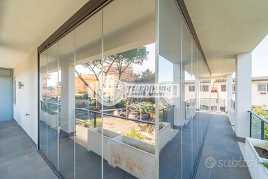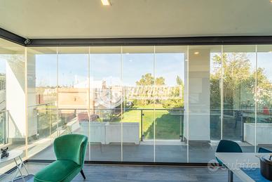 -Veranda abitabile adibita a sala da pranzo con cucina, completamente chiusa da eleganti vetrate che donano straordinaria luminosità