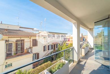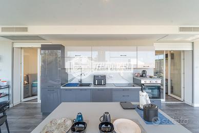 Un meraviglioso terrazzo perimetrale abbraccia l'appartamento e, grazie all'esposizione ad Ovest e all'assenza di edifici frontali, regala tramonti spettacolari tutto l'anno.