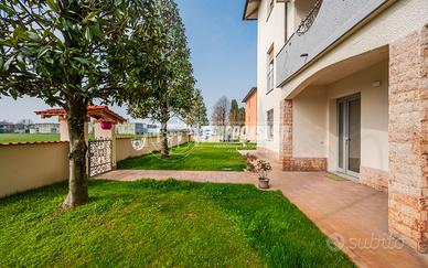 In contesto di villa, proponiamo appartamento con ingresso indipendente, ampia veranda luminosa e giardino privato: