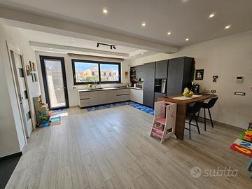 Salamone Immobiliare propone in vendita esclusiva casa unifamiliare indipendente, immobile di prestigio articolato su più livelli, ideale per chi cerca comfort, spazio e riservatezza. La proprietà si sviluppa su quattro livelli: piano terra, primo e secondo piano, oltre a una splendida terrazza panoramica, per una quadratura complessiva di 300 mq circa (interni) Al suo interno l'abitazione vanta ambienti ampi e ben distribuiti, così composti: Salone di rappresentanza perfeto per accogliere ospiti e vivere momenti conviviali; Grande cucina open space, moderna e luminosa con doppia esposizione; Tre camere da letto, ideali per famiglie numerose o per creare spazi studio/lavoro; Cinque bagni, comodi e ben rifiniti; Garage privato, con accesso diretto alla casa; Terrazzo attrezzato con cucina abitabile, uno spazio unico per cene all'aperto, relax e intrattenimento. L'immobile è dotato di tutti i comfort moderni, tra cui: Riscaldamento autonomo, Predisposizione per climatizzatori in tutti gli ambienti, Riserva idrica autonoma, Infissi a taglio termico di ultima generazione, che garantiscono ottimo isolamento termico e acustico, Predisposizione per impianto fotovoltaico, Predisposizione per impianto solare termico. La casa rappresenta una soluzione abitativa di alto livello, pensata per offrire benessere, efficienza energetica e indipendenza in un contesto residenziale riservato. Ape classe B
