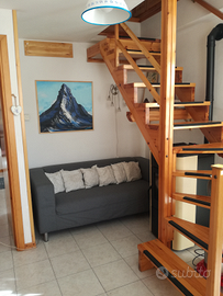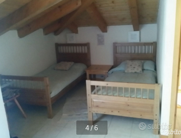 Luminosissimo trilocale a 20mt posta e bar, sito al secondo ed ultimo piano con accesso indipendente con grandi balconi composto da zona giorno con angolo cottura completo, camera matrimoniale con balcone, bagno finestrato con doccia. Secondo piano zona notte con 2 letti singoli ed uno a castello, balcone a tasca. Giardino comune, comodo parcheggio. Max 4 adulti e 2 bambini, minimo un mese. Per info SOLO ore serali