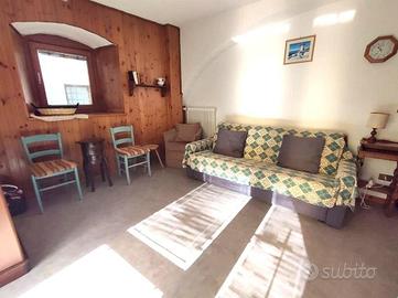 Proponiamo vendita esclusiva di bilocale in centro storico del paese, al piano terreno con nessuna barriera architettonica (ingresso a livello strada), composto da zona giorno con cucina a vista, disimpegno, servizio, camera matrimoniale. Riscaldamento autonomo con caldaia privata, nessuna spesa di gestione aggiuntiva. Per amanti dei borghi di montagna.