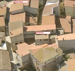 al piano terra: ingresso, cucina con accesso al cortile comunicante con vico Deledda, dal cortile si accede alla cucina rustica, sempre dal cortile, si accede tramite la scala realizzata in muratura alla terrazza e ai due locali di sgombero al piano primo. Sempre al piano terra insistono una camera, soggiorno e un locale di Sgombero che permette l'accesso ad un ampio bagno. Al piano primo si accede tramite la scala interna rivestita in pietra naturale ed è composto da: disimpegno, camera, camera, bagno e veranda. Il fabbricato è dotato degli usuali impianti tecnologici sottotraccia, al piano terra sono presenti due climatizzatori e il caminetto a legna nella zona cucina. Il fabbricato è dotato di ampia autorimessa sita a circa 30 metri dall'abitazione