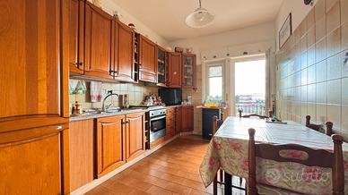 A seguire il corridoio conduce alla cucina abitabile con adiacente ripostiglio, ideale da utilizzare anche come vano dispensa/lavanderia e al comodo e luminoso soggiorno. Entrambi gli ambienti hanno uscita tramite porta-finestra sul primo balcone.