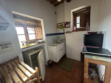 Poco distante dal caratteristico borgo di Panicale, immerso nel verde delle campagne umbre, bilocale con bagno, arredato, situato al piano terra di un casale suddiviso in 4 abitazioni. ?? Composizione ?L'appartamento, è composto da ampio soggiorno con camino, cucinino, camera matrimoniale, e bagno. ?Giardino ad uso comune con l'abitazione del piano primo. ??Stato e finiture ?L'immobile si presenta in ottime condizioni e viene locato completamente arredato. ?Adatto ad ospitare due persone al massimo. ?Utenze escluse dal canone di locazione.? Disponibile solo per affitti transitori.