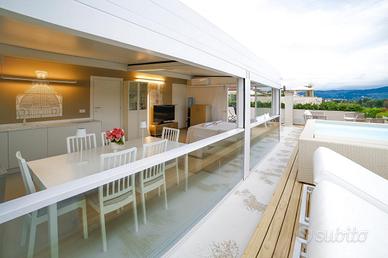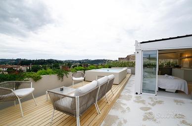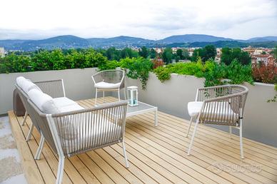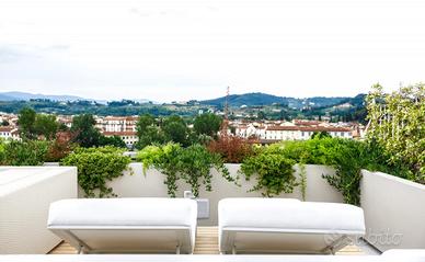 FIRENZE LUNGARNO COLOMBO In contesto elegante ed ottimamente ubicato, ad un passo dal centro storico, proponiamo in vendita prestigioso appartamento di oltre 100 mq posto al piano terra rialzato. L'immobile, frutto di una recentissima ristrutturazione, viene venduto arredato, con alte finiture di lusso e design, ed è così composto: ampia zona living e cucina open space, due camere matrimoniali (di cui una con bagno en suite), cameretta ed ampio guardaroba. Di pertinenza all'appartamento inoltre abbiamo uno splendido rooftop di circa 90 mq, posto al 6° piano servito da ascensore, con splendida vista sullo skyline cittadino. L'attico è dotato di un ampio pergolato, vasca idromassaggio e solarium. Tutti i materiali utilizzati, tra cui rivestimenti in resina e pannelli in legno di rovere, rendono l'immobile unico nel suo genere.