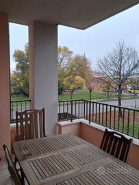 Fiumicello, in via Fermi ampio e carinissimo appartamento del 2003. Ingresso, cucina abitabile, soggiorno, doppi servizi, due comode camere, due terrazze coperte, doppio garage, ripostiglio, lavanderia e posto auto scoperto. L'appartamento, in perfette condizioni, è già quasi del tutto arredato con mobili di qualità.