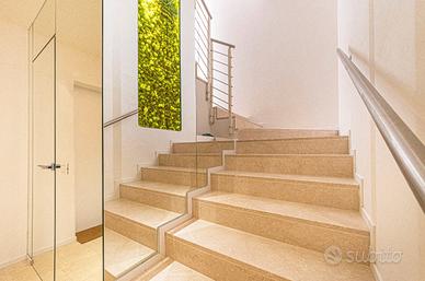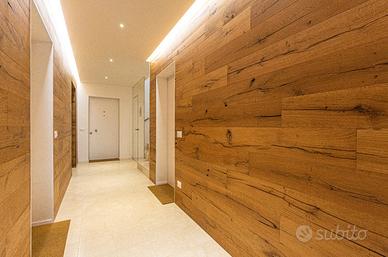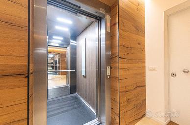 Sviluppato al secondo ed ultimo piano e dotato di ascensore, l'immobile si compone di ingresso, soggiorno con cucina separabile, dotato di un ampia vetrata scorrevole con accesso ad un terrazzo abitabile di 33 mq; a completare il piano un bagno finestrato, un ripostiglio ed camera matrimoniale. Salendo le scale troviamo la zona notte completamente travata a vista, composta da altre 3 camere da letto ed un bagno finestrato. A completare al piano seminterrato troviamo un garage doppio in larghezza.