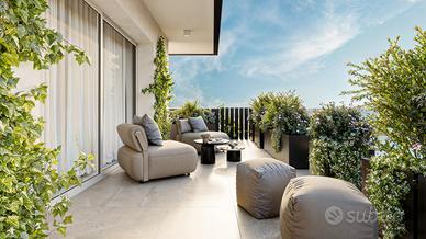 L'ampia zona giorno open space di ben 40 mq è illuminata da una vetrata scorrevole che conduce a un magnifico terrazzo coperto di 30 mq. La zona notte comprende tre camere spaziose dotate anch'esse di accesso ai terrazzi, due eleganti bagni moderni e un utile ripostiglio/lavanderia. A completare questa offerta esclusiva ci sono anche un garage privato e un posto auto dedicato.