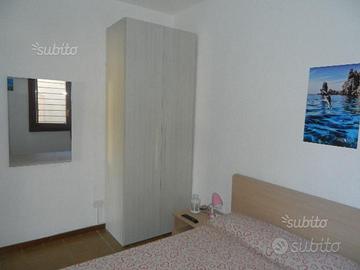L'appartamento ha un arredamento semplice e funzionale ed è composto da: una camera matrimoniale (finestra ad un'anta che si affaccia sul retro dell'appartamento) con ARIA CONDIZIONATA e ventilatore a soffitto e TV, soggiorno con angolo cottura e divano letto a due posti e ventilatore a soffitto, TV 40', lavatrice, bagno con doccia e finestrino a vasistas (50x50), frigorifero con freezer, terrazzo (muretto fronte mare altezza 150 cm e muretto laterale altezza 90 cm) di circa 12 mq attrezzato con tavolo, sedie e ombrellone per mangiare fuori, un posto auto nel parcheggio riservato del campo sportivo.