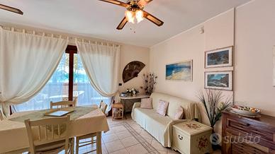 Situato al piano terra di un contesto riservato e ben tenuto, l'immobile offre una superficie di circa 60 mq, composta da un luminoso soggiorno con cucina a vista, una camera matrimoniale accogliente e un bagno finestrato rifinito con gusto. Tutti gli ambienti sono impreziositi da materiali di qualità: infissi in vetro-camera con legno Meranti, porte in legno massello e pavimenti in gres chiaro, che donano luce e armonia agli spazi.
