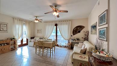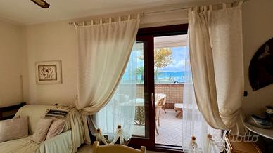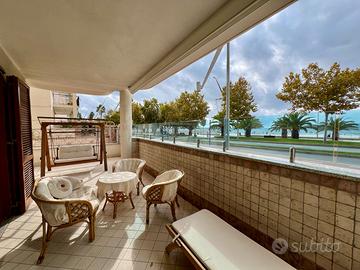 L'elemento distintivo di questa casa è l'ampia veranda privata di 45 mq, elegantemente attrezzata, perfetta per vivere l'esterno in ogni stagione: uno spazio ideale per colazioni vista mare, momenti di relax o cene all'aperto in compagnia del tramonto. La posizione fronte mare garantisce non solo una vista invidiabile, ma anche una costante brezza marina e una sensazione di vacanza quotidiana.