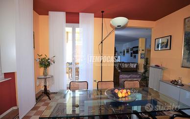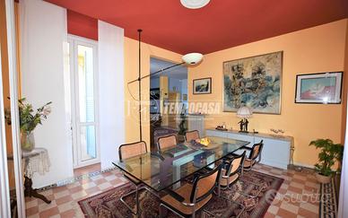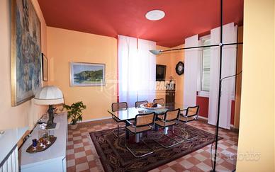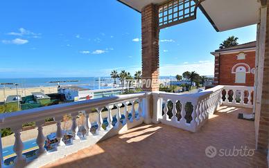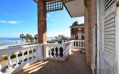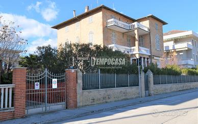 PORTO SAN GIORGIO - 1° FILA MARE - In posizione esclusiva e semicentrale, al 1° piano di una villa in stile Liberty caratterizzata da un grande giardino circostante, appartamento di 150 mq con ingresso, ampio salone con camino ed uscita sul terrazzo di 15 mq fronte mare, zona pranzo anch'essa con uscita sul terrazzo ed affaccio sul mare, ripostiglio, cucina abitabile con camino e retro-cucina, camera matrimoniale con bagno privato finestrato, bagno principale con vasca e doccia, e seconda camera matrimoniale. A completare la soluzione troviamo una cantina di ben 23 mq al piano strada, con H 2,50 e convertibile ad uso taverna/appoggio per pranzi estivi, un garage di ben 20 mq con ingresso da via IV Novembre, ed infine 2 comodi posti auto situati nel giardino interno alla villa. INTERNO in buone condizioni abitative, con infissi in pvc e doppio vetro a taglio termico, impianto termico in rame con caloriferi in ghisa, e bagno principale completamente rifatto. Ambienti ampi e luminosi nell'arco di tutta a giornata, vista l'esposizione su tutti e 4 i lati, la zona giorno, completamente esposta ad est, permette di godere di una vista impagabile. ESTERNO caratterizzato da finiture e materiali tipici dell'epoca; il grande giardino condominiale, in buona parte piantumato, rende il complesso unico nel suo genere, i 2 posti auto interni ed il garage sono dei valori aggiunti introvabili. Posizione esclusiva, fronte mare e vicina a tutti i principali servizi. Quattro buoni motivi per acquistare questo immobile: 1) Ampia metratura e contesto - 2) Terrazzo sul mare - 3) Garage e 2 posti auto - 4) Posizione esclusiva TUTTI I NOSTRI IMMOBILI SONO GESTITI IN ESCLUSIVA VISIONA TUTTE LE NOSTRE PROPOSTE SUL SITO WWW.TEMPOCASAPORTOSANGIORGIO.IT - Classe: F - IPE: 98.33 kWh/mq anno