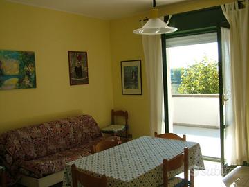 L'appartamento è completamente arredato come da foto, superficie circa mq. 65 ben distribuiti, con soggiorno molto luminoso con accesso all'ampio terrazzo e divano letto 2 piazze, cucina a vista, camera matrimoniale spaziosa con accesso al balcone con affaccio sul parco principale e vista mare, bagno finestrato con box doccia. Buone condizioni interne abitabile subito. Impianto di riscaldamento autonomo. E' situato al primo piano senza ascensore con doppio affaccio.