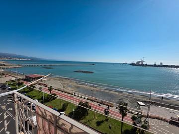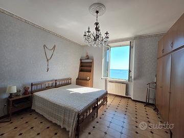 Vado ligure nostra esclusiva ! Alloggio totale fronte mare posto all ultimo piano con ascensore Riscaldamento autonomo la casa ha una vista mozzafiato Si compone di un ingresso ampio tre camere da letto salone cucina abitabile bagno e ampia cantina di proprietà accessibile anche dall esterno Ideale come prima o seconda casa La cifra e' trattabile !! Consigliata da noi