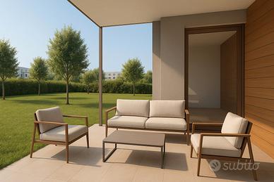 Inserito in un elegante contesto residenziale a Selvana, appartamento al piano terra con giardino privato. La proprietà comprende soggiorno con angolo cottura, camera matrimoniale, bagno finestrato. Nel disimpegno, una pratica nicchia ripostiglio. Completa l'unità posto auto riservato interno alla proprietà. Gli ambienti, finemente arredati con mobili su misura dal design contemporaneo, si distinguono per funzionalità ed eleganza e godono di una favorevole esposizione ad ovest, garantendo un'ottima luminosità nel corso di tutta la giornata. Soluzione ideale per chi ricerca comfort, riservatezza e uno stile abitativo curato nei dettagli.
