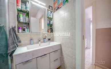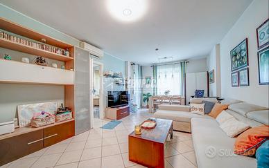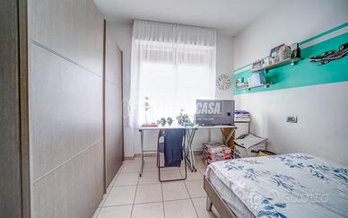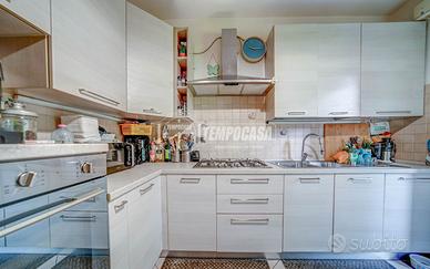 La soluzione é inserita in un contesto che gode di grande tranquillità ed é dotata di un ampio giardino condominiale. Tanti sono i servizi in prossimità della casa, come farmacia, scuole, supermercati. Completa la proprietà un box singolo con all'interno al cantina, ora non più separata in quanto la parete divisoria è stata abbattuta, il che porta il box ad essere considerabile come doppio.