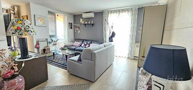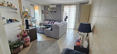 Nel prestigioso Residence Garden Stars, proponiamo un elegante attico posto al 4° piano, caratterizzato da ambienti curati nei minimi dettagli e finiture di alto livello. L'abitazione si apre su un luminoso salone con cucina a vista, perfettamente integrata in uno spazio moderno e accogliente, ideale per la vita quotidiana e per ricevere ospiti. Completano la zona giorno una comoda lavanderia e un bagno rifinito con materiali di pregio. La zona notte è composta da una cameretta e da una raffinata camera da letto matrimoniale, pensate per garantire comfort, privacy e funzionalità, e un comodo ripostiglio. Punto di forza dell'attico è l'ampio terrazzo a livello, perfetto per momenti di relax all'aperto, pranzi e cene conviviali, oltre al terrazzo sovrastante ad uso esclusivo, che offre uno spazio unico e riservato con infinite possibilità di personalizzazione. La proprietà è completata da garage e posto auto, assicurando praticità e comodità. Un attico rifinitissimo, ideale per chi cerca una soluzione esclusiva, elegante e pronta da vivere all'interno di un contesto residenziale signorile.