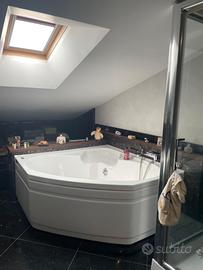 Le due grandi camere, di cui una con bagno in camera, sono avvolte dal balcone perimetrale, così potrai goderti la luce e l'aria fresca in ogni ambiente. La stanza da bagno è un vero ambiente di relax, con una grande vasca angolare con idromassaggio e un'ampia doccia.