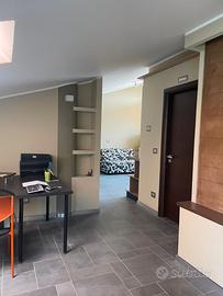 La camera da letto matrimoniale è un rifugio di tranquillità, mentre l'ampio bagno con doccia completa la disposizione perfetta degli spazi.