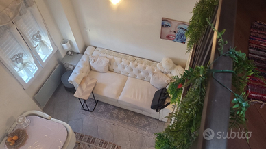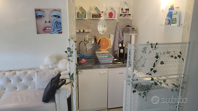 Varcata la porta d'ingresso, ci troviamo subito nella zona giorno: un ambiente curato e luminoso, con soggiorno e angolo cottura a vista disposti in modo funzionale. La parete cottura, compatta ma ben attrezzata, è perfetta per l'uso quotidiano o per brevi soggiorni.