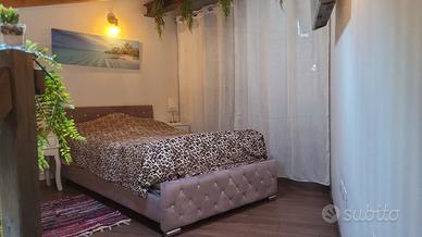 Una scala interna in legno conduce alla camera matrimoniale soppalcata, ben isolata dal soggiorno e progettata per offrire massimo comfort nonostante le dimensioni contenute. Lo spazio è stato ottimizzato grazie alla presenza di una cabina armadio su misura, ideale per mantenere l'ordine con stile.
