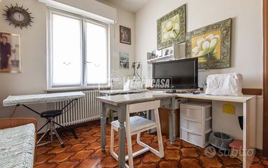 INGRESSO su SOGGIORNO di 20 mq con accesso al BALCONE, CUCINA ABITABILE di 8 mq, DISIMPEGNO che conduce alla PRIMA CAMERA di 15 mq, SECONDA CAMERA di 12 mq e BAGNO con doccia.
