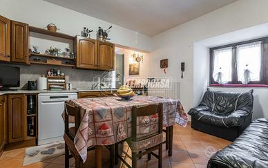 PIANO TERRA: ingresso che conduce al SOGGIORNO di 17 mq, CUCINA SEPARATA di 8 mq, DISIMPEGNO che conduce alla CAMERA MATRIMONIALE di 16 mq, alla CAMERETTA di 9 mq, e al BAGNO PADRONALE finestrato con doccia.