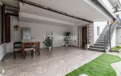 L'ingresso si affaccia sul PORTICO di PROPRIETA' di 25 mq con accesso a un BAGNO con RIPOSTIGLIO.