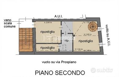 PIANO SECONDO: SECONDO SOGGIORNO di 19 mq, SECONDA CAMERA MATRIMONIALE di 14 mq, SECONDO BAGNO finestrato con doccia e COMODO RIPOSTIGLIO.