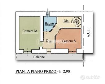 Al livello superiore troviamo un DISIMPEGNO che conduce alla CAMERA MATRIMONIALE di 15,5 mq con accesso al BALCONE, SECONDA CAMERA di 12,5 mq anch'esso con accesso al BALCONE e BAGNO con VASCA.