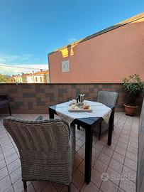 Privato affitta signorile ed elegante appartamento ,in piccola palazzina, a Grado in zona Costa Azzurra a 100 mt. dalla spiaggia,composto da: soggiorno-angolo cottura con divano letto,camera matrimoniale,n.2 bagni e n. 2 terrazzi.L'appartamento è