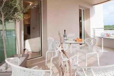 Rif: 25 (192636215) - A pochi passi dall'ingresso principale della spiaggia, lungo il suggestivo viale pedonale, proponiamo in vendita un elegante appartamento bicamere, finemente arredato e curato nei minimi dettagli. L'immobile si distingue per la sua raffinata disposizione interna, composta da: Ingresso accogliente su un ampio soggiorno con accesso a un terrazzo con incantevole vista mare, cucina abitabile, perfetta per chi ama cucinare e ricevere ospiti, ripostiglio funzionale disimpegno che separa armoniosamente gli ambienti bagno di servizio, due spaziose camere da letto, di cui una con cabina armadio e bagno privato, entrambe con accesso al secondo terrazzo. Dotazioni e comfort esclusivi come il riscaldamento autonomo a pavimento per il massimo del comfort in ogni stagione e la climatizzazione a soffitto con sistema di purificazione dell'aria e mantenimento costante della percentuale di umidità presente negli ambienti, gestione domotica avanzata per il controllo di tutti gli impianti e l'impianto fotovoltaico dedicato al funzionamento delle pompe di calore Il prestigioso stabile in cui è situato l'appartamento offre inoltre servizi esclusivi, tra cui: Servizio di portineria attivo 24/24 per garantire sicurezza e assistenza in ogni momento Spa con centro benessere e palestra per il massimo relax e benessere degli ospiti. Un'opportunità unica per chi desidera vivere in un ambiente esclusivo, con tutti i comfort a portata di mano. Contattaci per maggiori informazioni o per prenotare una visita!. - Classe: B - IPE: 70.00 kWh/mq anno
