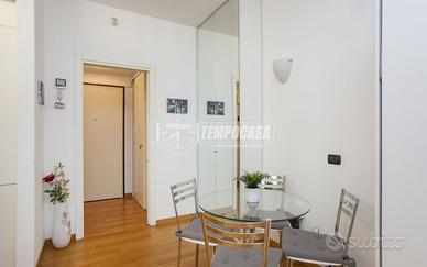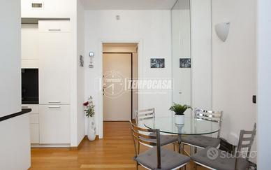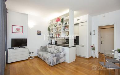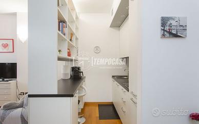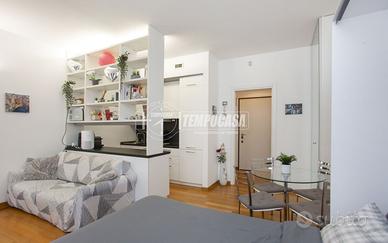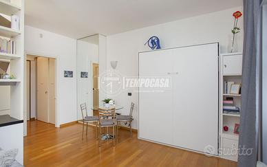 L'immobile presenta un ingresso, grande zona giorno/notte, cucina con due grandi finestre ed esposizione su cortile interno, e bagno completo con zona lavanderia. Servizio di portineria h24, riscaldamento e aria condizionata centralizzati.