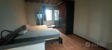 Al secondo piano troviamo vasta camera da letto padronale anche qui con travi a vista.